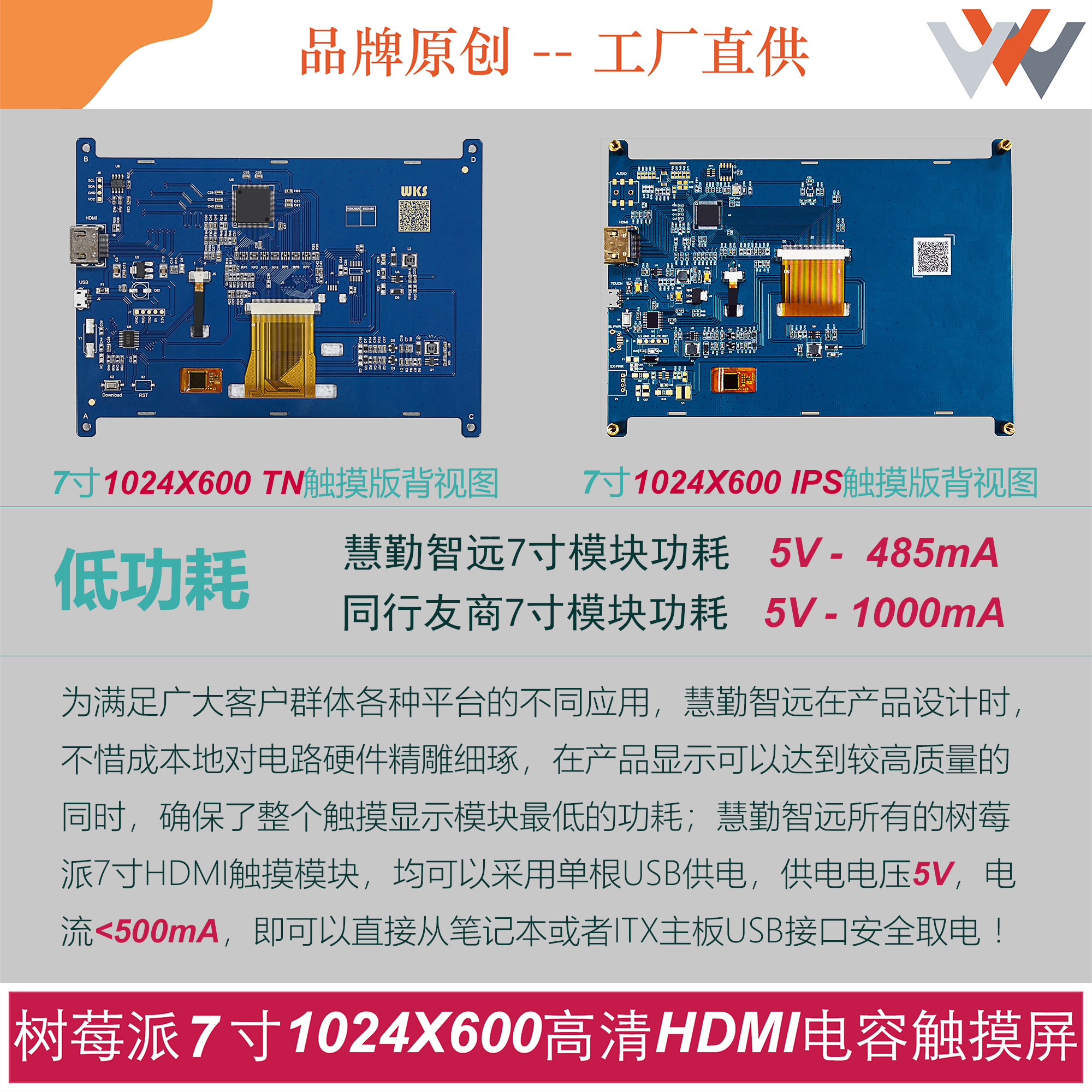 Raspberry Pi 7 inch HDMI display screen HD display USB capacitive touch screen free drive 1024x600
