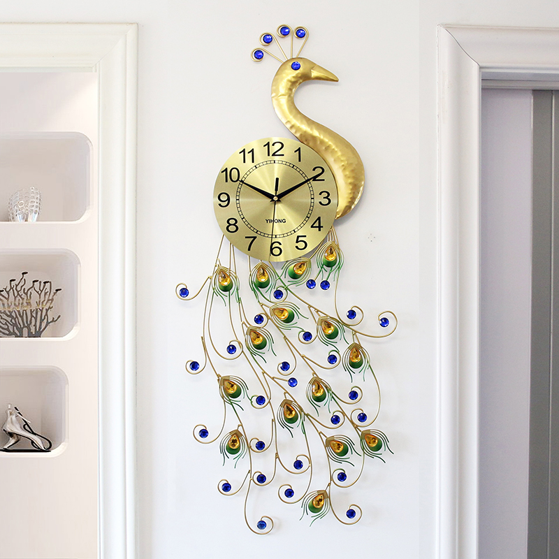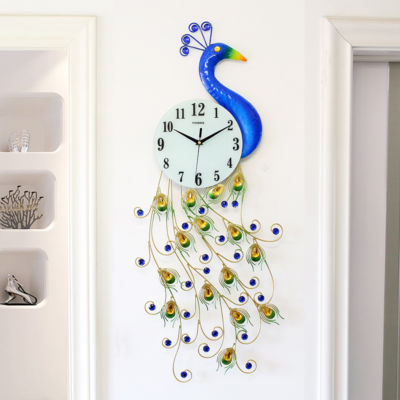 A red peacock simple creative personality clock wall clock living room modern decorative clock bedroom quartz clock atmosphere