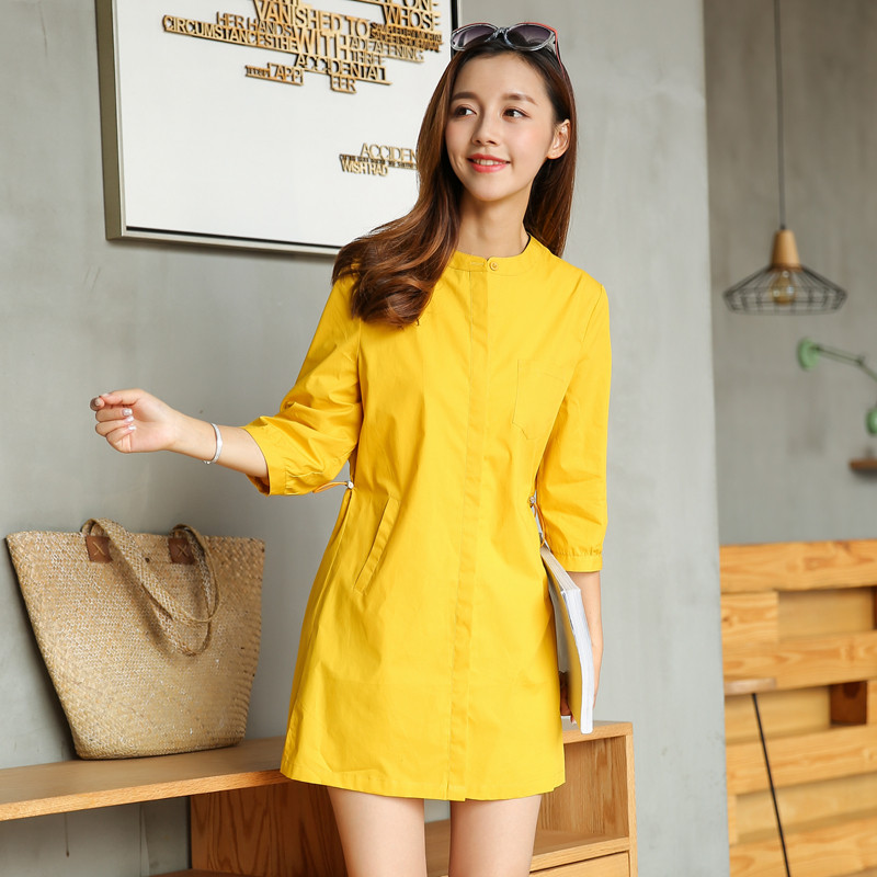 2020 spring and summer new Korean version of waist long coat women's seven-point sleeve windbreaker slim thin cardigan