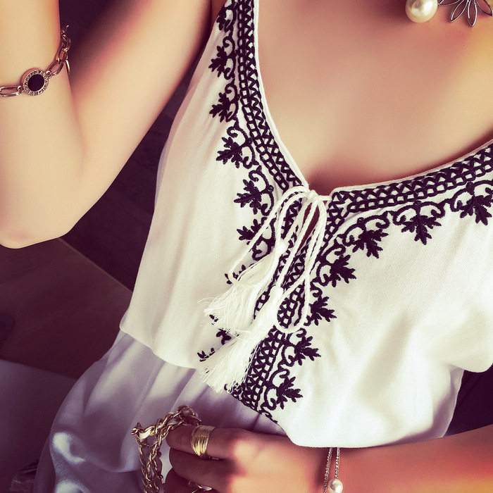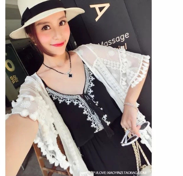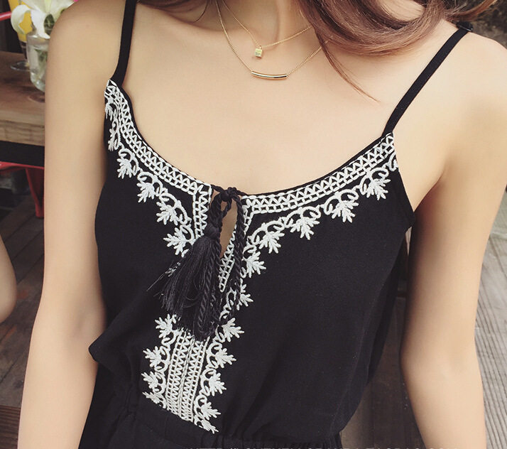 Korean version of white embroidered harness with pants loose casual display slim shorts black sexy holiday dress pants woman