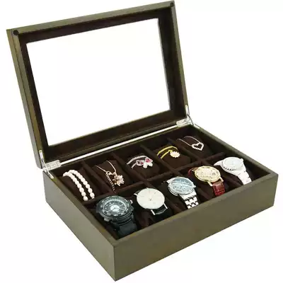 Watch box five-digit watch box retro household wooden jewelry box accessories storage hand collection solid wood veneer