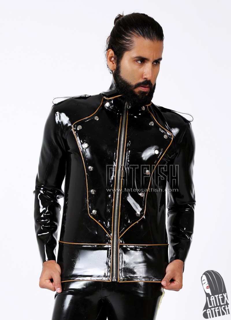 Catfish latex clothing latex tight fit two-piece suit tight jacket set to do