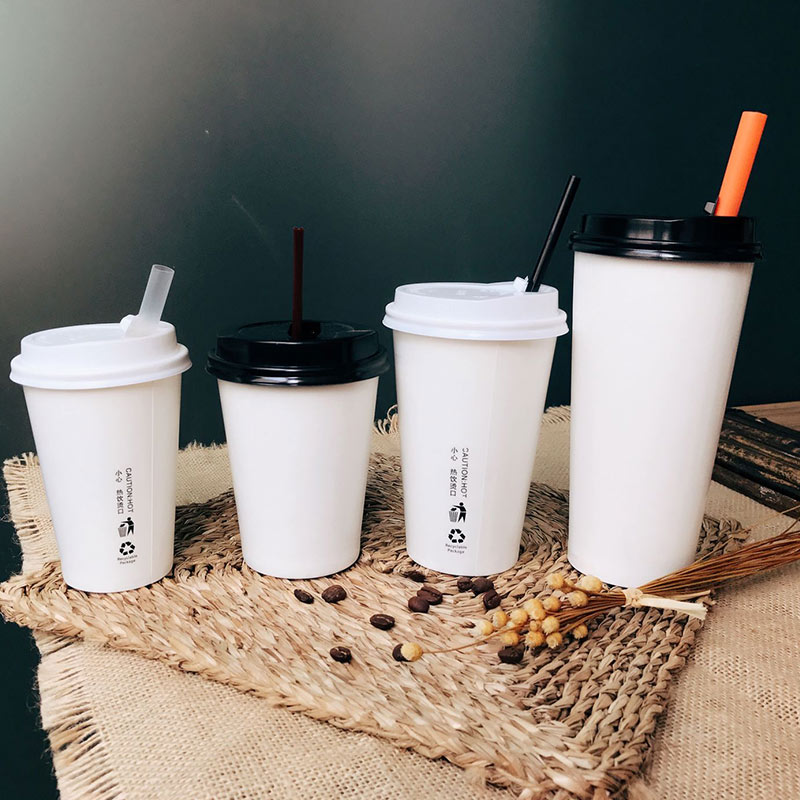 Disposable paper cups, white cups, double-coated film, thickened, anti-scalding, hot and cold drinks, milk tea, coffee, commercial FCL custom advertising