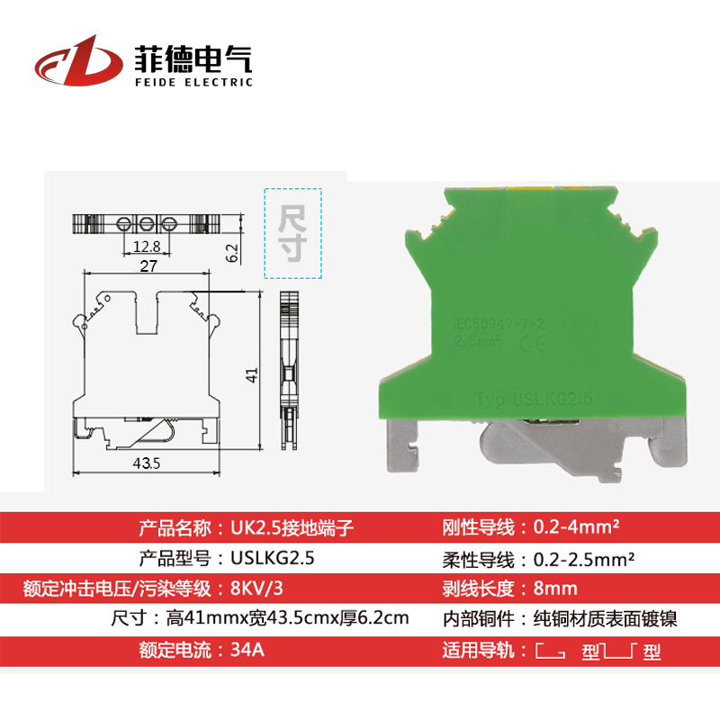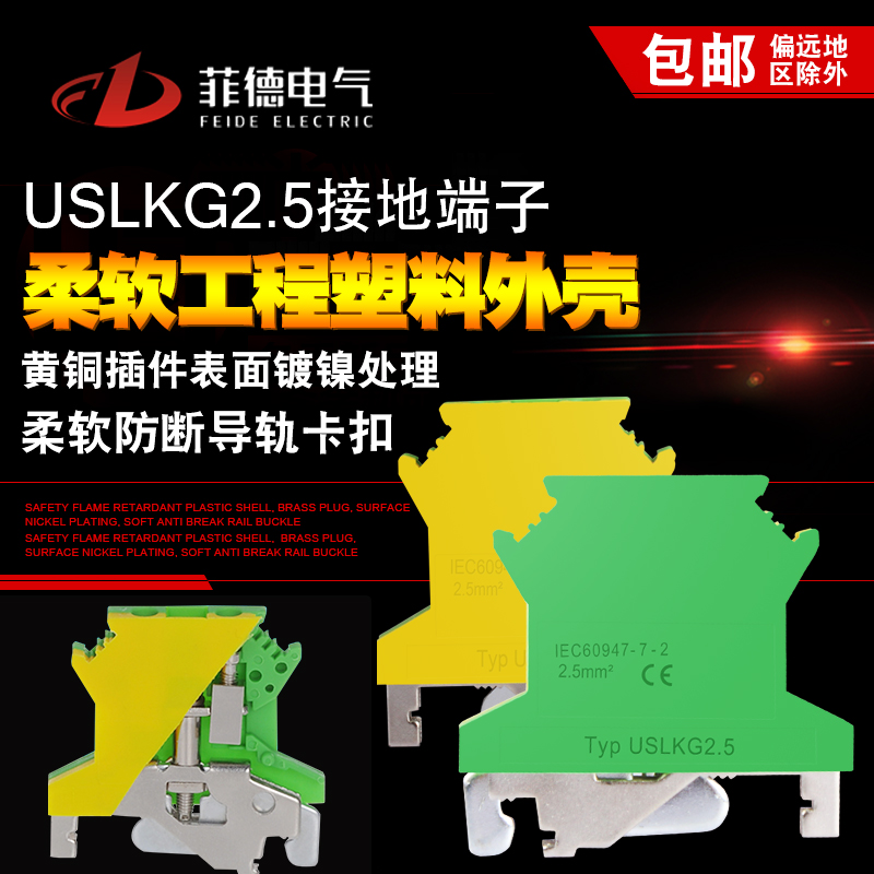 UK bicolor voltage yellow green ground terminal USLKG2 5 wiring end sub-bench pure copper universal rail style
