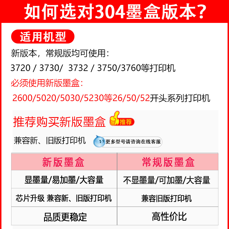 ①304 Black Economy Edition (display ink) 600 pages of A4 paper with 5% coverage ②304 Color Economy Edition (large ink display capacity) ③304 Black Regular Edition (display