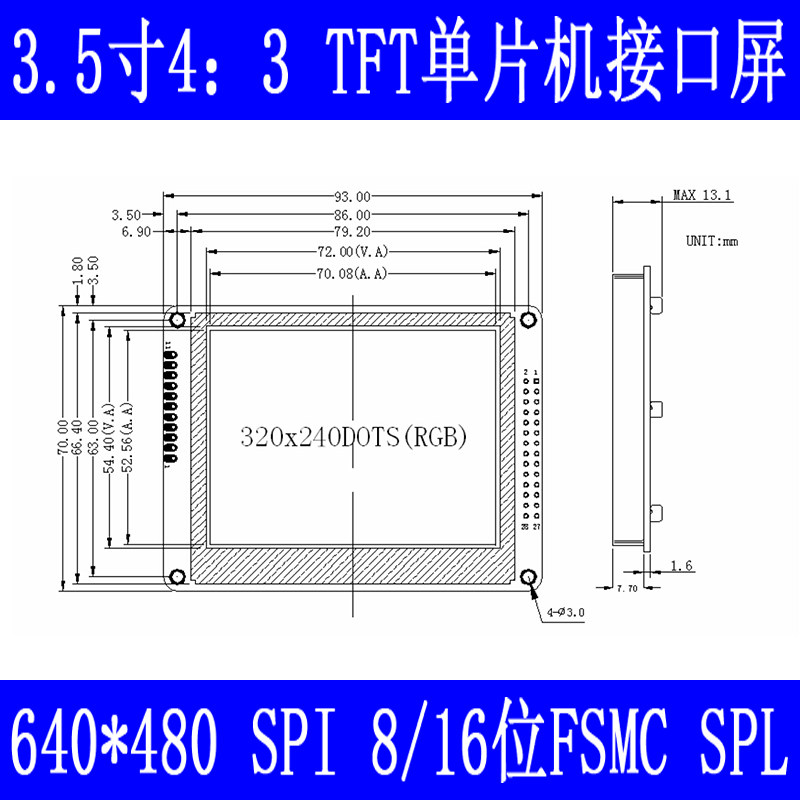 3 5-inch TFT LCD module color screen SPI 6-bit 8-bit FSMC MCU interface display resistive touch screen