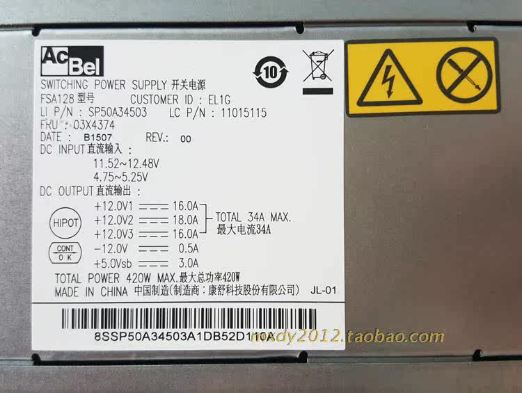 Lenovo's new TS440 540 redundant power supply conshu FSA128-EL1G 420W redundant power module