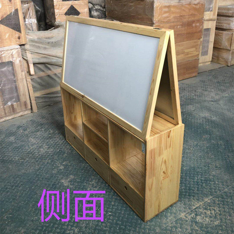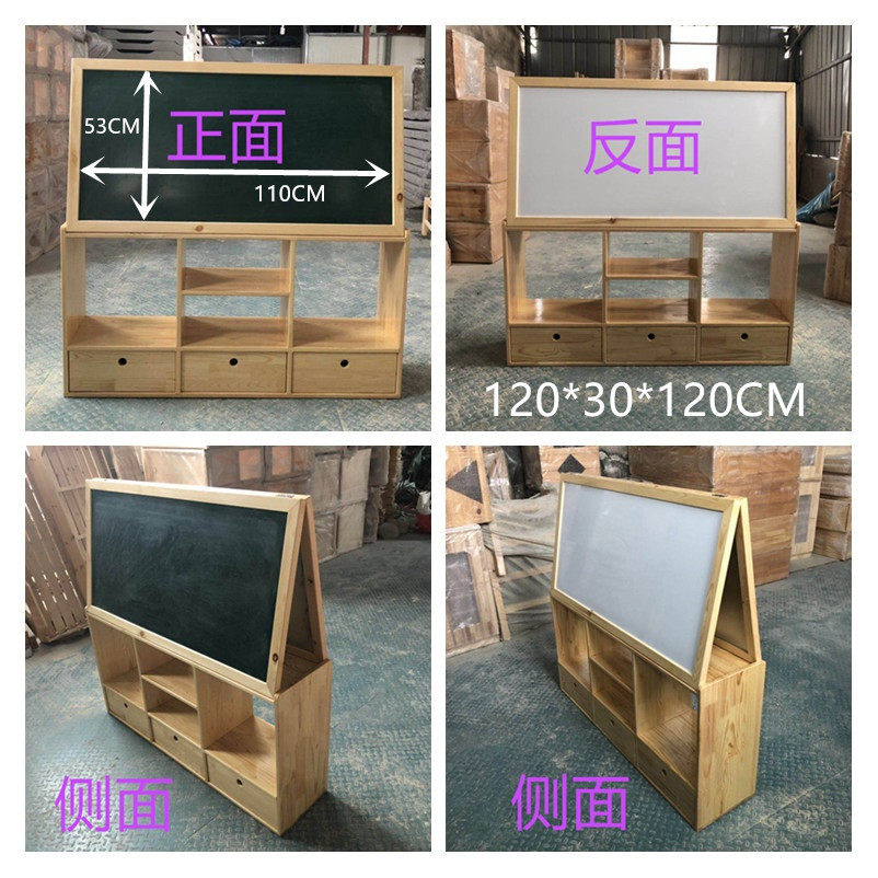 Kindergarten Child Bifacial Removable Magnetic Blackboard Cabinet Pine Wood Log Cabinet Green White Blackboard