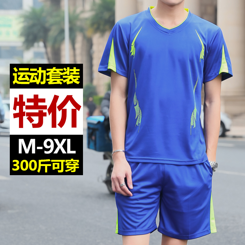 Sport suit Male Summer thin section plus Mast Size Relaxation Short Sleeve Running Suit Casual Two-piece Speed Dry Fitness Clothing