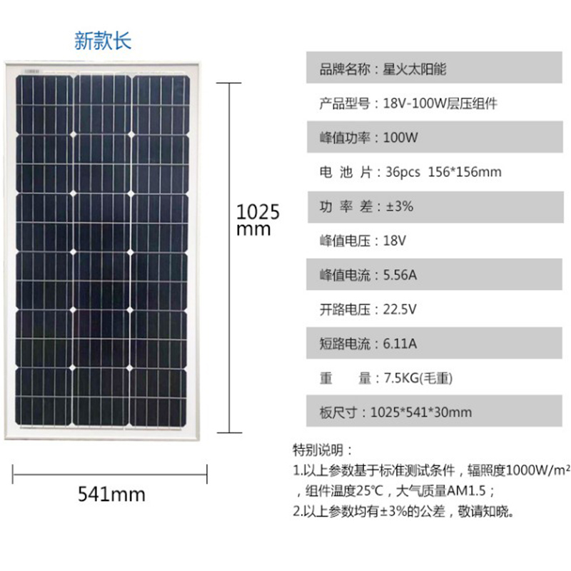 Efficient single crystal 100W solar photovoltaic panels for home power generation 220V combinable scenic complementary power generation system