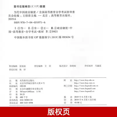 Spot October 2019 self-examination New version 00315 contemporary Chinese political system 2019 edition Wang Xutian Higher Education Press 0315 self-study examination textbook Liyuan Book