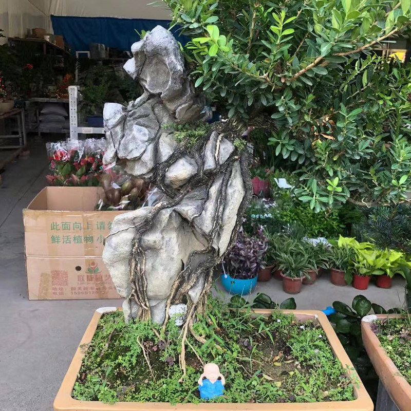Green dragon stone tree huddle with stone bonsai plant with stone stone Calamus Grass Attaching tree stone false mountain scenery natural original stone decoration