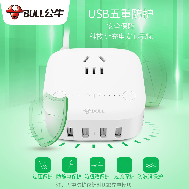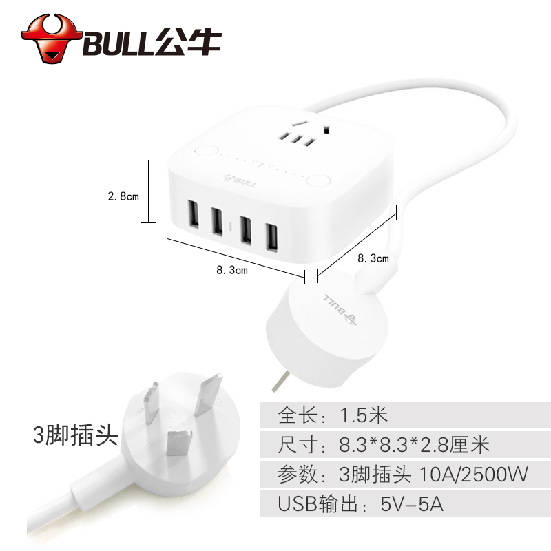 Bull USB Socket Mini anti-overcharge magic Cube Multi-functional vertical plug-board extension cord extension cord
