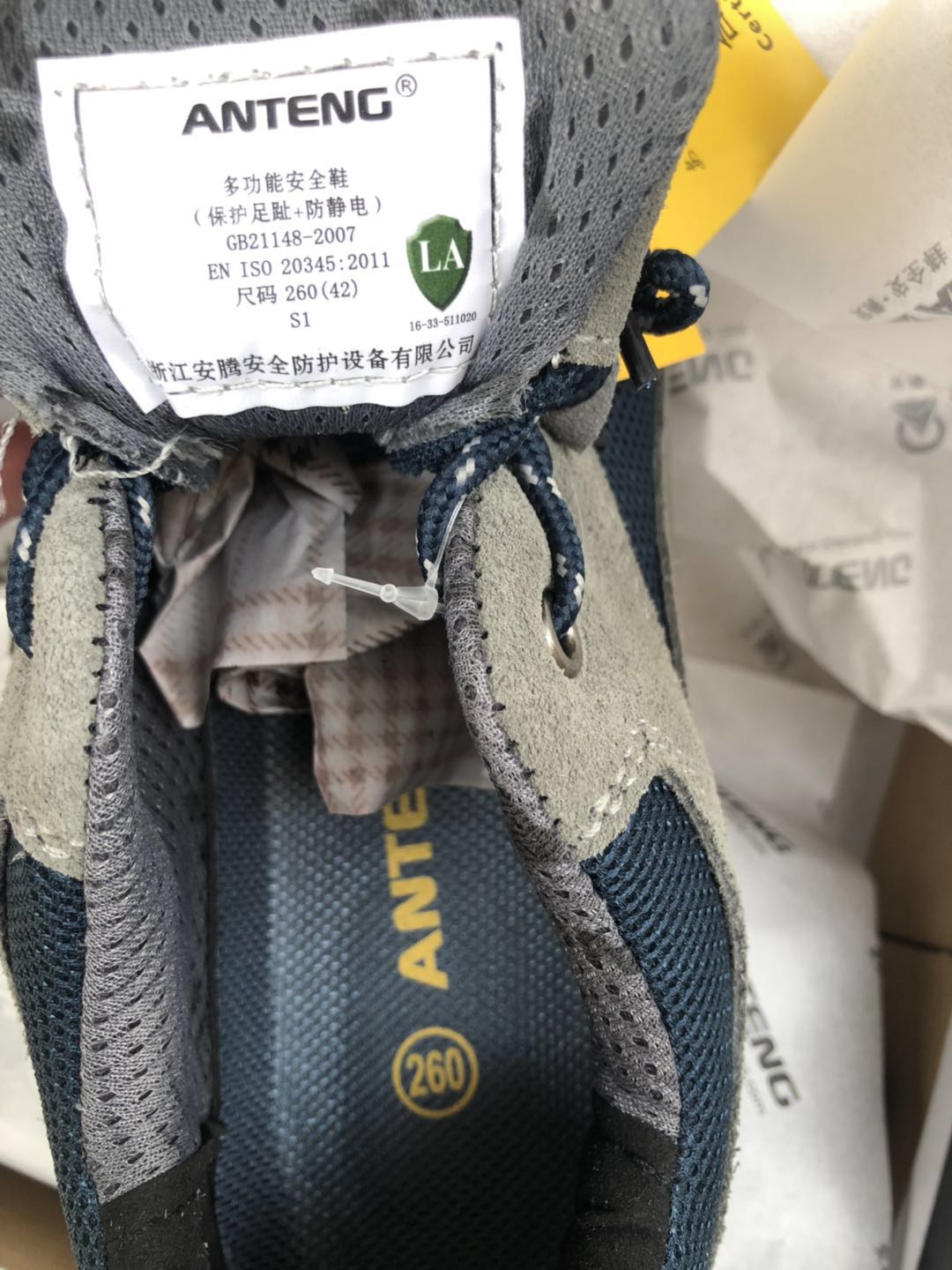 Anten A9180 Lao Shoes Genuine Leather Anti-Smash Anti-Slip Anti-Slip Summer Breathable National Standard Steel Head With LA Lauan License