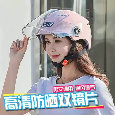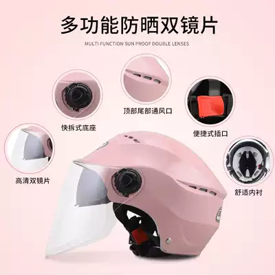 Net red summer electric car battery car helmet Half helmet Summer helmet Men's and women's sunscreen double lens electric car protective helmet