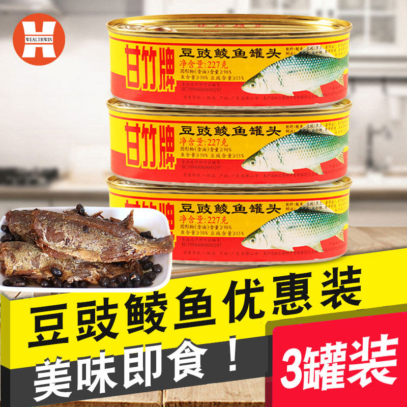 Ganzhu brand tempeh canned dace fish 227g*3 canned ready-to-eat canned meat Guangdong specialty sea fish ready-to-eat meals