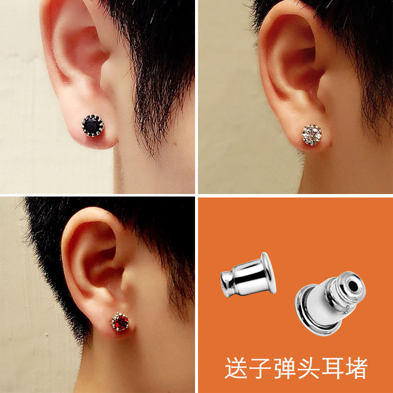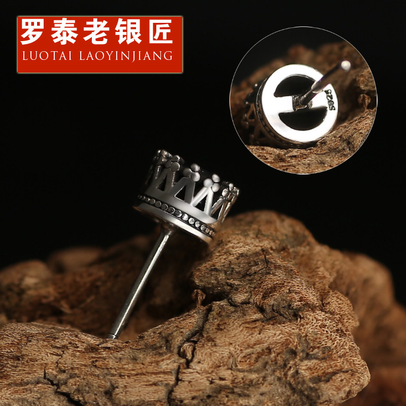 Rotai old silversmith 925 silver earbuds male and female single individuality retro Thai silver fashion tide male and black silver accessories