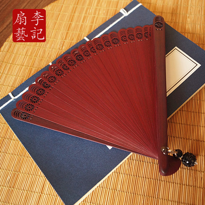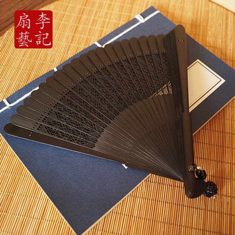 Li Ji fan art Chinese style handicraft gift whole bamboo fan female fan ancient folding fan carving Hollow folding fan