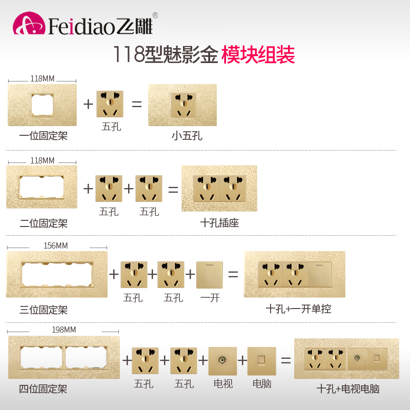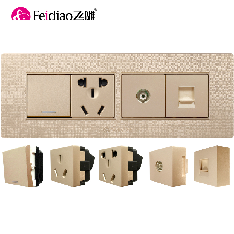 Fei sculpture switch socket 118 combined module five - hole charm gold household wall panel rectangular drawing gold