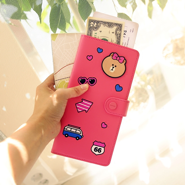 South Korea line friends cute brown bear tide fashion girl 3M anti-information leakage passport holder identification bag