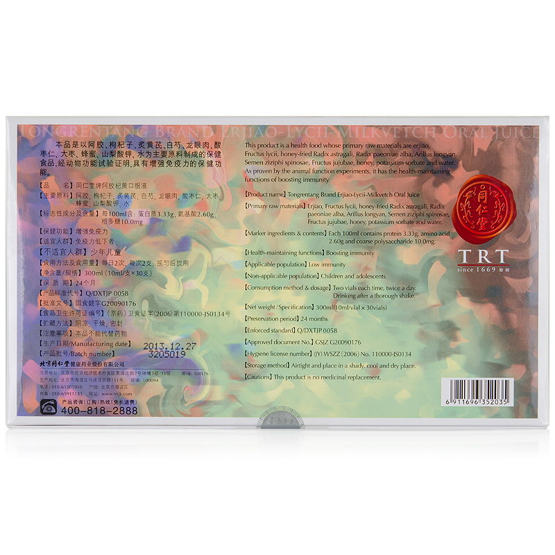 Beijing Tongrentang Hide-Hide Gelatin Qi Huang Oral Liquid and Milk Vetch Improve the Official of Immunity Supplements