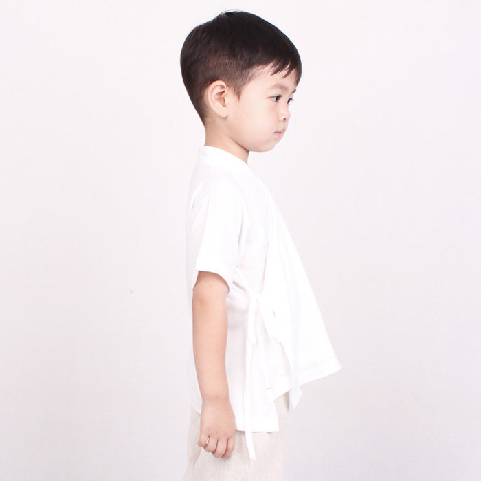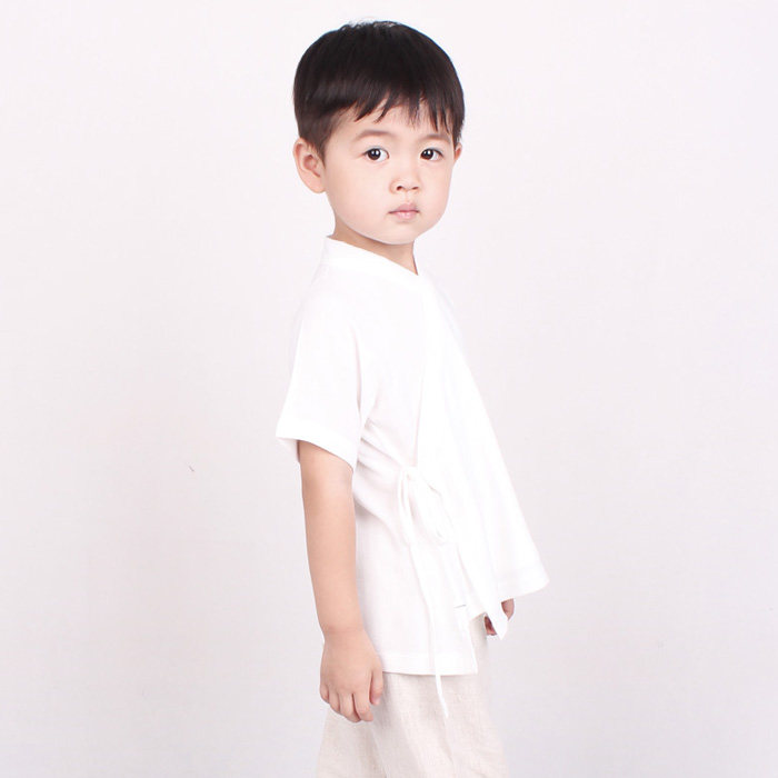 Summer children Han clothes pure boys short sleeve models improved monk clothes daily cotton white tops