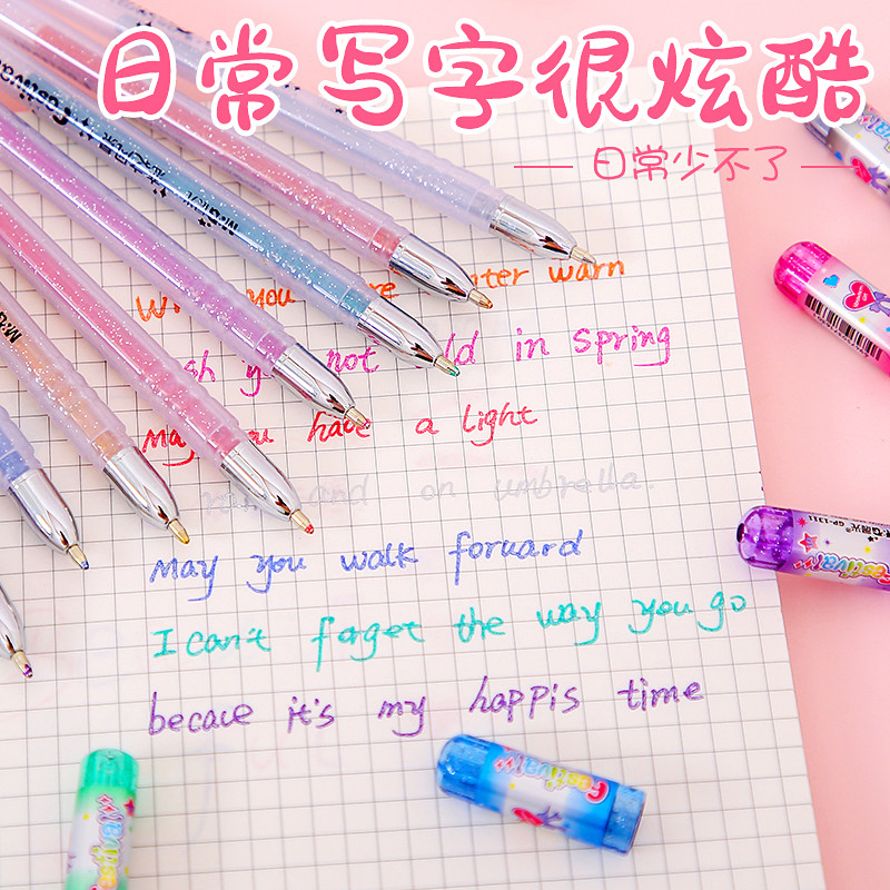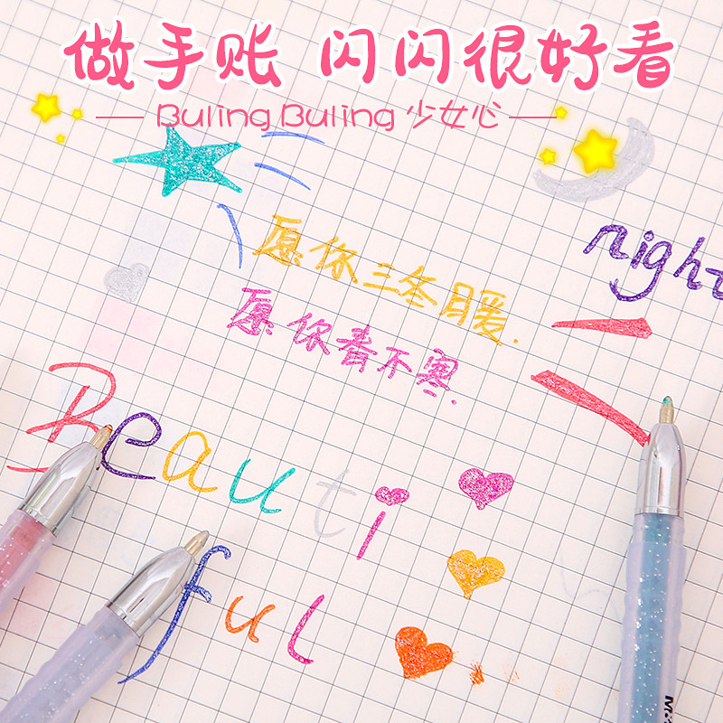 Morning light children's flash color pen Colorful shiny fluorescent color pen Gel pen Student notebook pen Set of fluorescent marker pen beads Bright flash hand account pen Color pen Rough stroke key marker pen