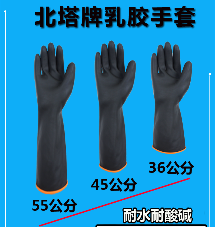 North tower Latex Gloves 55CM lengthened thickened Acid-resistant, black Industrial anti-chemical Laureproof and waterproof