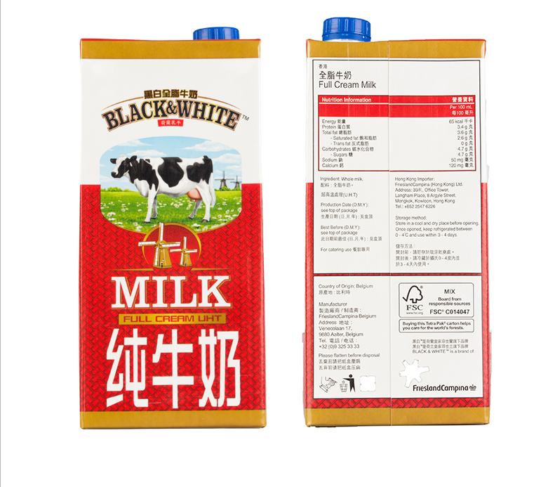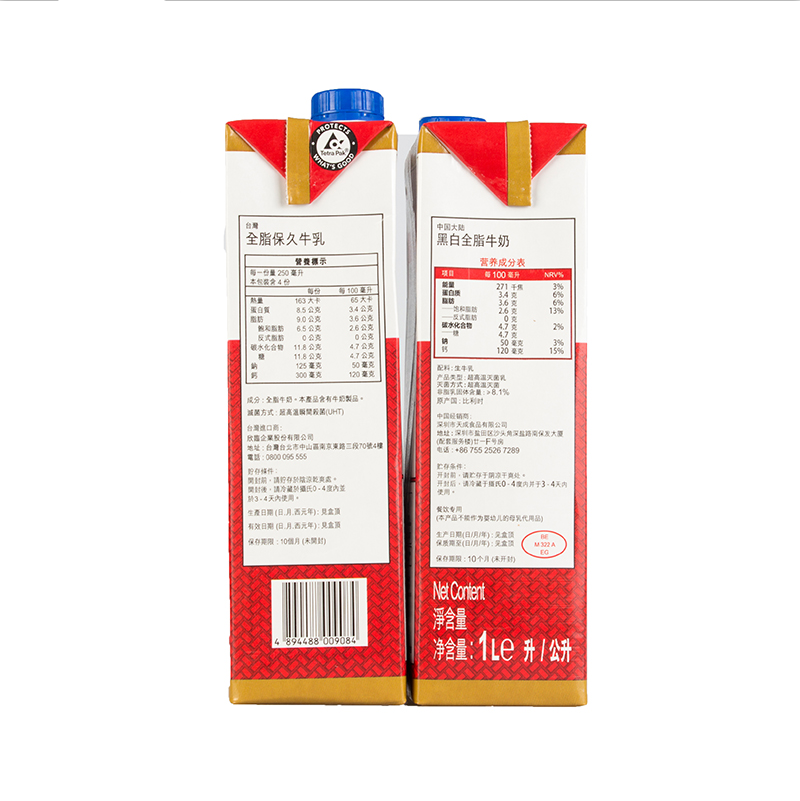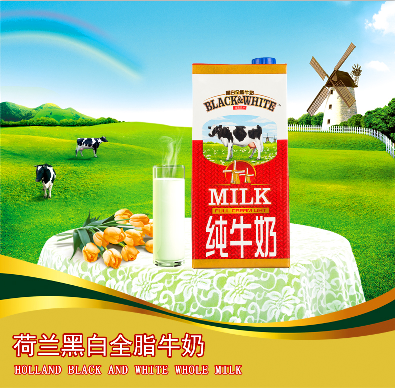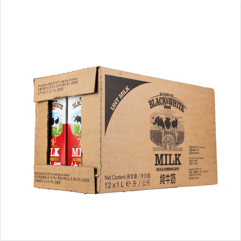 Whole box Dutch black and white whole fat milk 1 liter * 12 imported black and white pure milk can be made with milk bubble flower style coffee