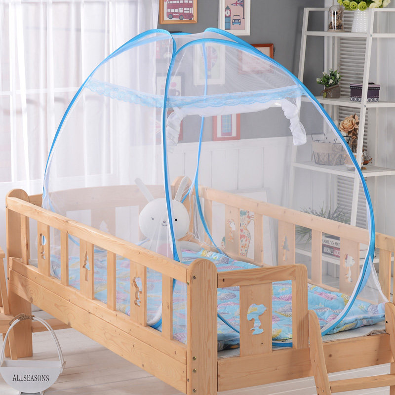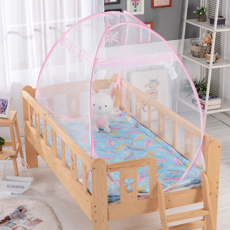 Children's bed fall-proof yurt mosquito net 168*88 Baby baby bed free installation with bottom can be folded Princess pink