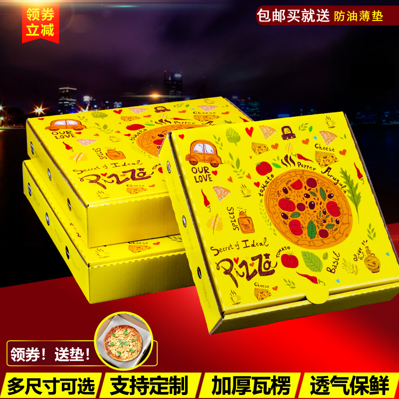 Yellow 7 Inch 8 Inch 9 Inch 10 Inch 12 Inch Pizza Box Pizza Takeaway Packing Box Disposable Pizza Packaging Box