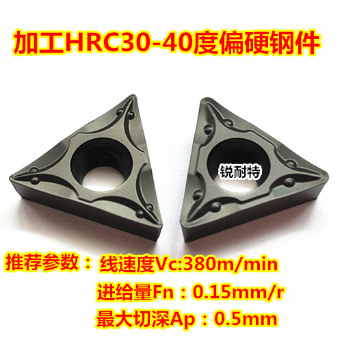 TCMT110204-RM (yellow machined steel piece) TCMT110204-RM (black machined hard steel) TCMT110208-RM (black plus