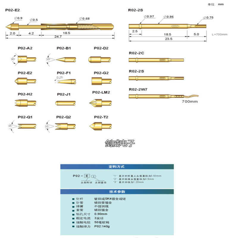 Warboom test probe P02-B1 0-68 conductive needle test probe spring thimble bronze pin tip