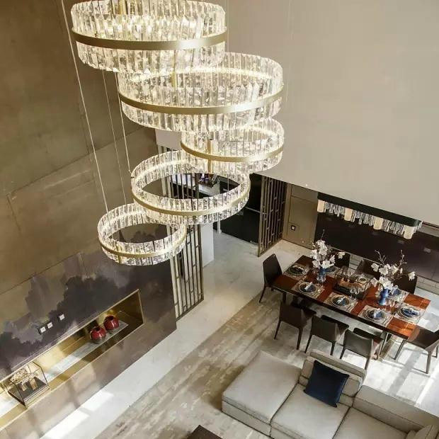 Light extravagant crystal pendant lamp cirque titanium alloy stainless steel rear modern designer decent board room dining room dining room Bedroom Chandeliers