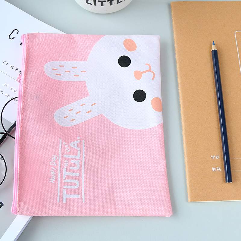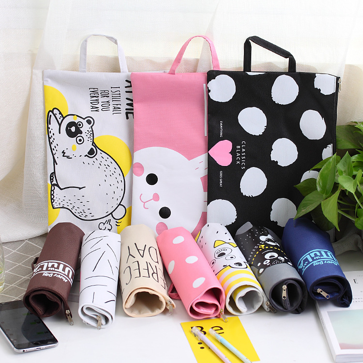 Korean stationery cartoon cute portable Oxford cloth document bag A4 student paper zipper canvas data file bag