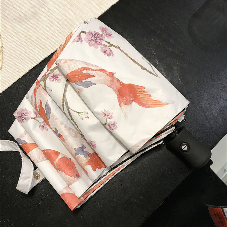 Red koi watercolor hand-painted original personality folding automatic umbrella sunscreen wind-resistant UV-resistant sunny umbrella