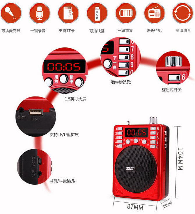 Upgraded version Red (one-click recording 15 hours Upgraded version Red (send 4G card 1468 selected songs Upgraded version Red(send 8G card 3000 selected songs ordinary version red (3-5