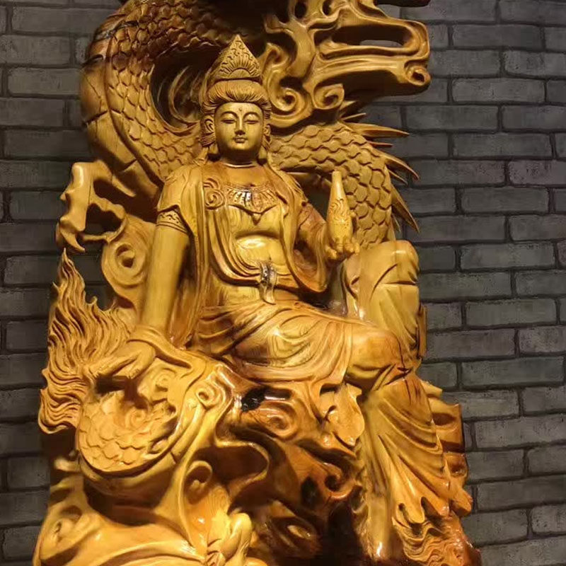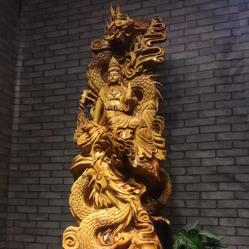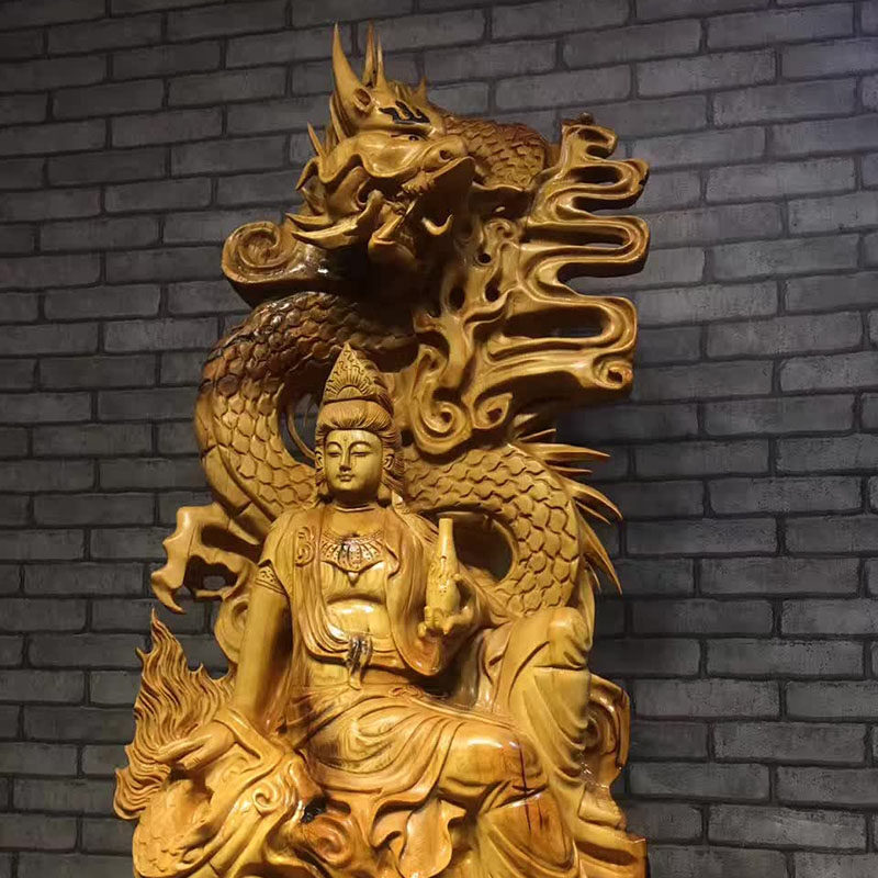 Wood root carving factory Cliff cypress old material carving Ssangyong net bottle Avalokitesvara Buddha statue decoration living room Buddha hall decoration direct sales