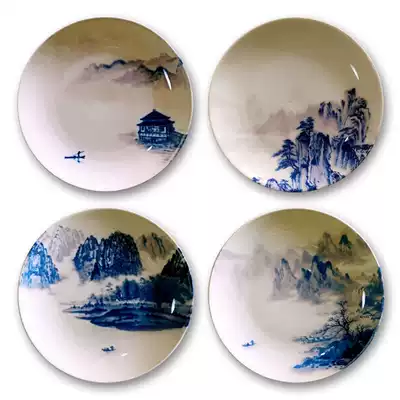 New Chinese style classical landscape decoration plate creative background wall hanging plate Hotel model room decoration sitting plate decoration