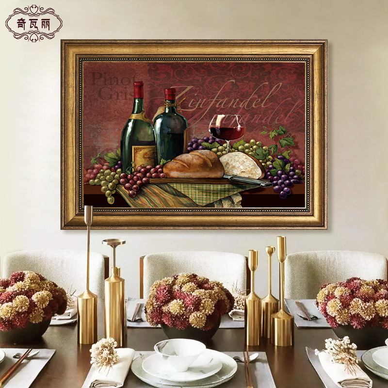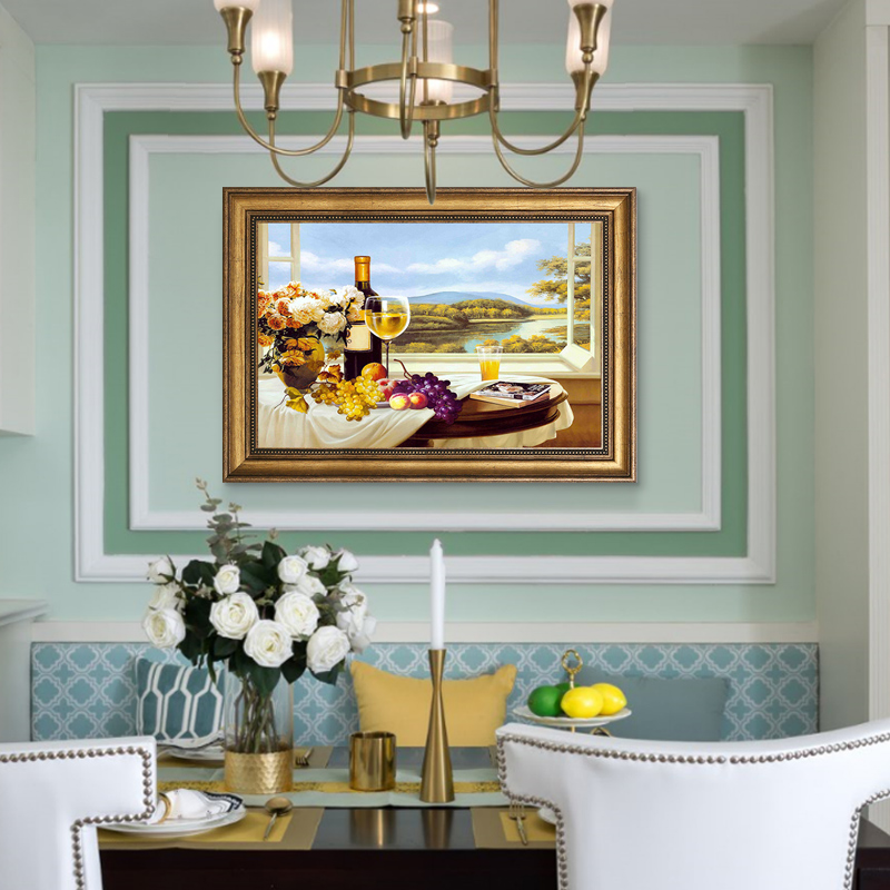 European-style restaurant decorative painting high-end American style dining room background wall hanging painting oil painting mural kitchen retro