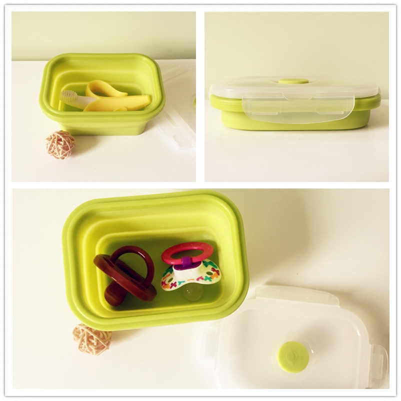 American teether storage box silicone folding lunch box storage box portable snack box baby pacifier box