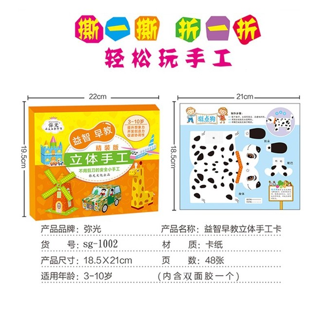 Children Free Cut Fun Manual Book Folding Paper Large Full 3D Solid Kindergarten Handmade Book Complete