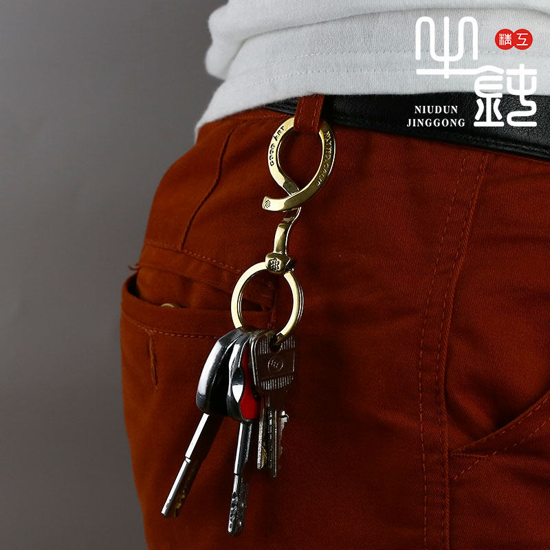 Niu blunt Seiko good art key chain cherry blossom pure copper 925 silver handmade replica men's waist hanging jewelry Europe and America