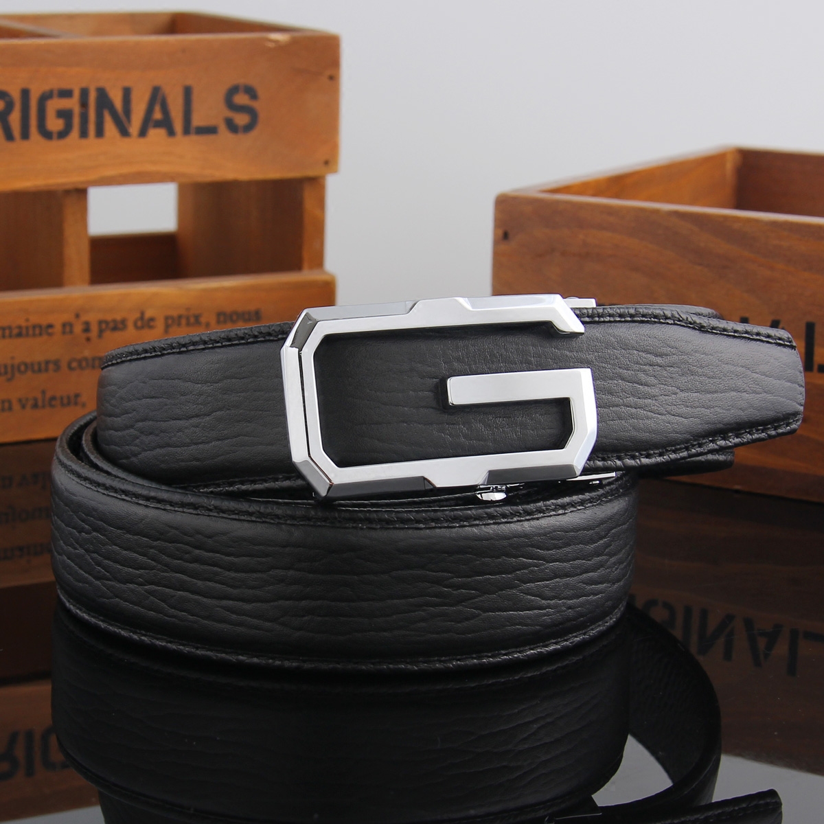Ailanbao casual men's belt automatic buckle double-sided first layer leather G letter belt leather Korean version of the young and middle-aged