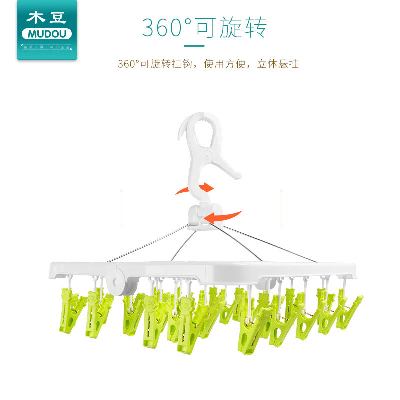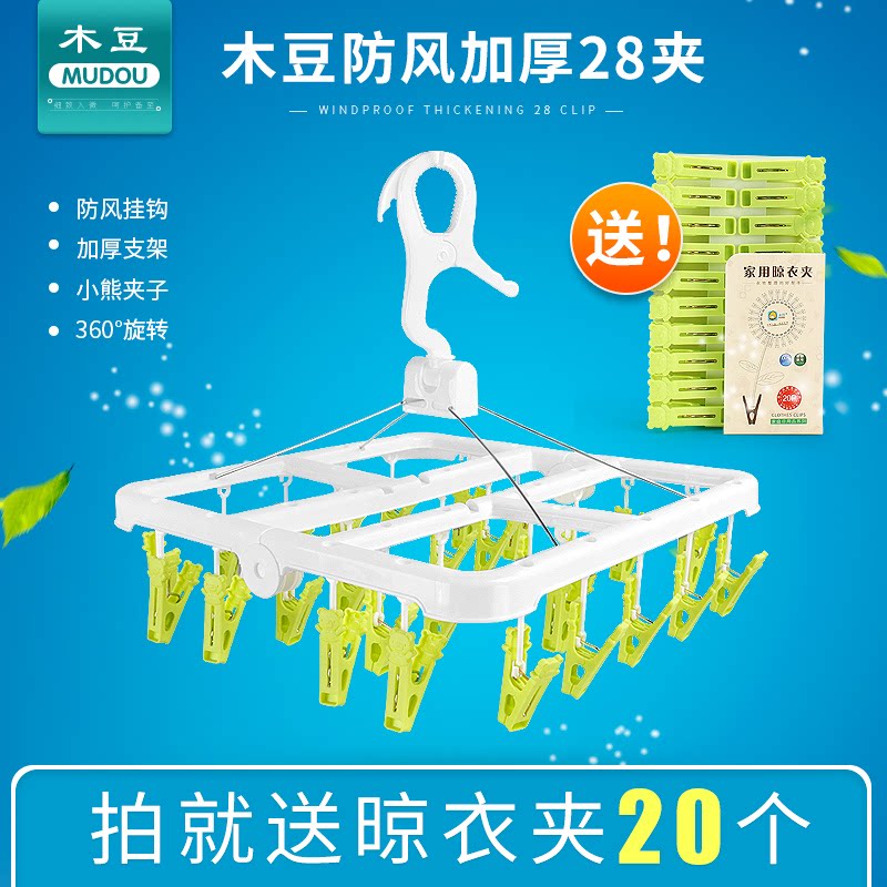Household multi-function clothes rack 28 clip drying indoor and outdoor windproof artifact Infant socks diaper folding hook rack