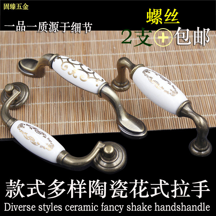 Chinese-style cabinet door ceramic handle Wardrobe drawer handle European-style overall cabinet door shoe cabinet pastoral handle