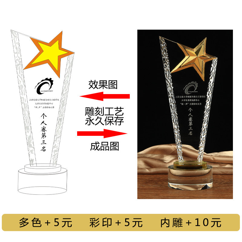Crystal Trophy Medal Thumb Pentagram Competition Medal Souvenir Authorization Card Spot Customized Manufacturer