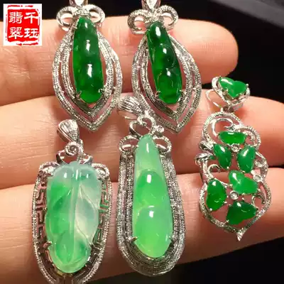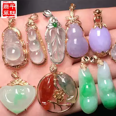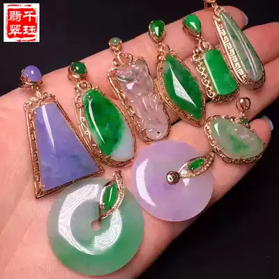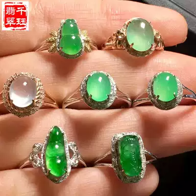 Natural A goods jade ice seed Green full green jade pendant Ruyi Buddha Guanyin ring Women 18K gold inlaid jade