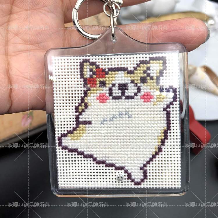 Haha cat cross embroidered large size acrylic key buckle bag hanging material bag A023 Koki dog woman