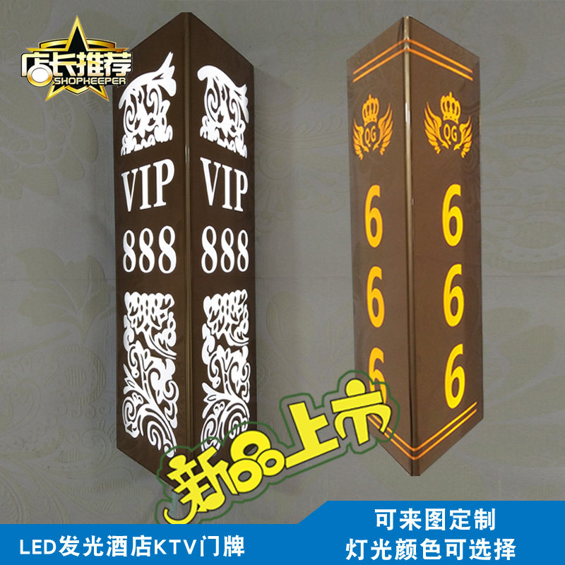 Creative New Triangle double sided LED with light Luminous Gate License Plate Customized Hotel KTV Bag instructions